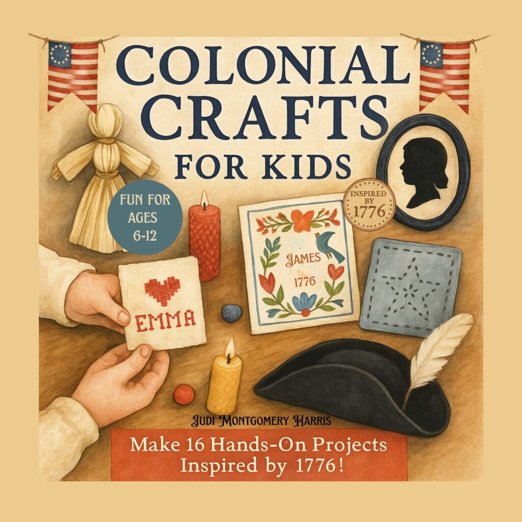 Colonial children didn’t have screens or elaborate toys. They had imagination, simple tools, and everyday work that doubled as play. Rolling a ball to knock down nine pins in the grass feels like stepping back in time. Drawing silhouettes by tracing someone’s shadow creates keepsakes that are surprisingly special. Carrying water from one bucket to another — something we did back in 1976 — turns into laughter and friendly competition. Stacking small logs or sticks into neat piles teaches patience and balance without anyone realizing they’re learning anything at all. Even tying fabric scraps onto twine to make a rustic banner feels meaningful when you slow down enough to enjoy it.